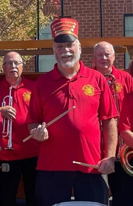 Lynn has been playing trombone since the 5th grade. He was a business major at Madison College (now called JMU) and was an inaugural member of the Marching Royal Dukes, established in 1972. For the next 35 years he only played privately at home. In the early 2010's, someone from the church started a small orchestra to play at church services. One of the orchestra members discovered a small community band located in Harmony, Maryland, which led to a few of the orchestra members joining the Harmony Cornet Band. In 2018 the Harmony Cornet Band, which played parades and concerts, expanded and added the Swingin' Harmony Big Band to its genres.